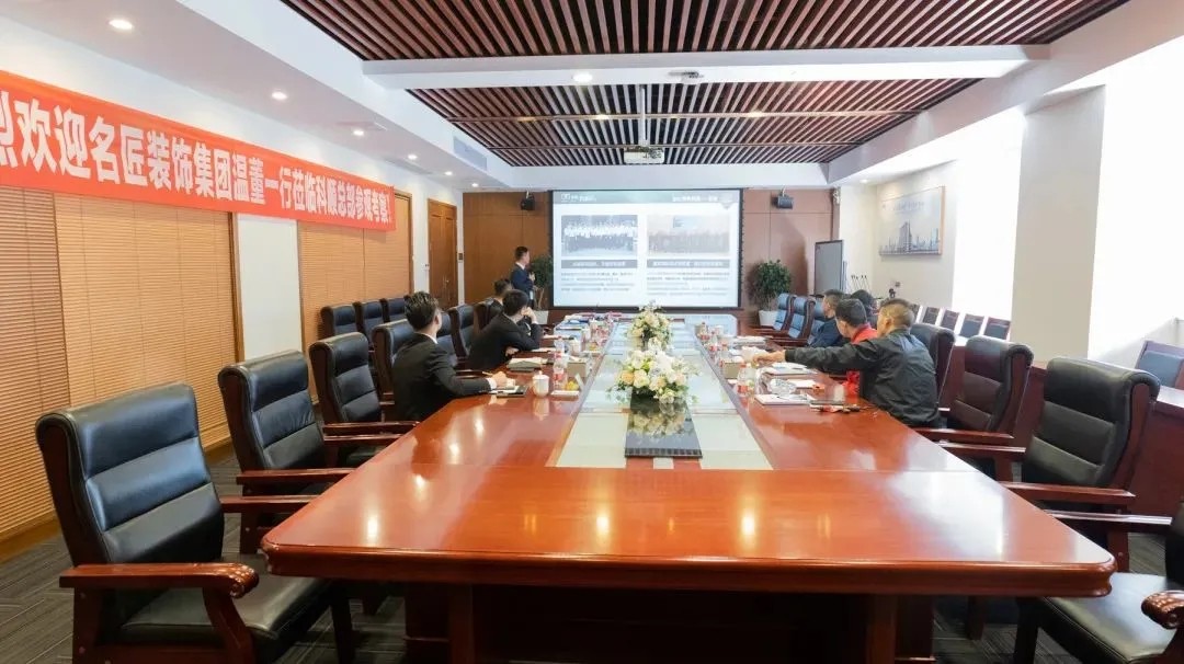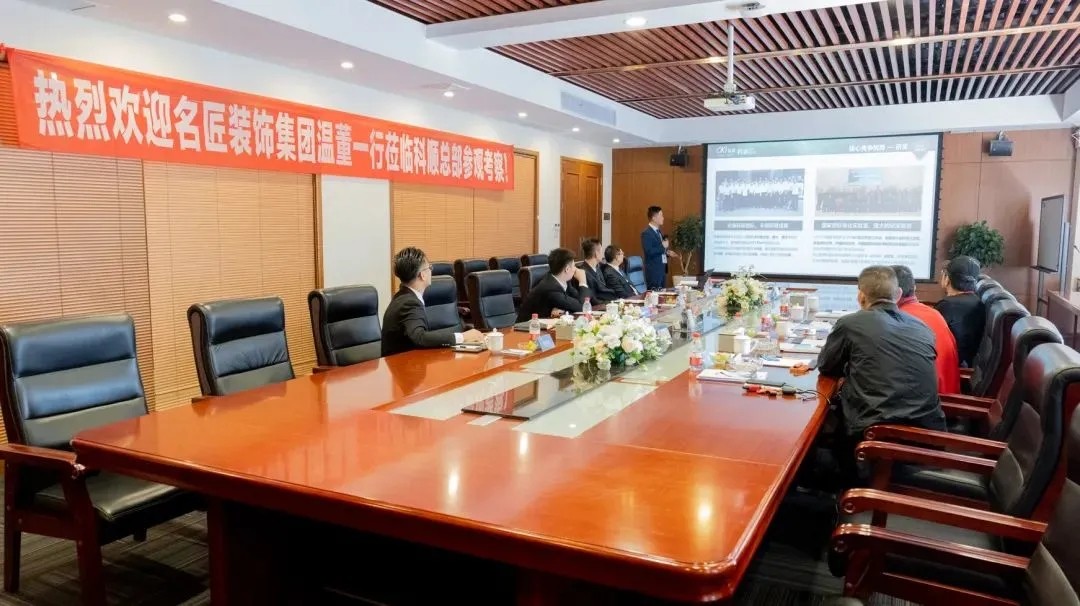 近日,名匠裝飾集團董事長溫浙濤(以下簡稱溫董)一行到訪科順股份集團總部,并在科順民建集團總裁徐汝意(以下簡稱徐總)帶領(lǐng)下交流考察。