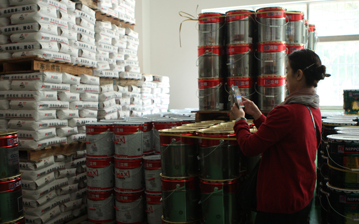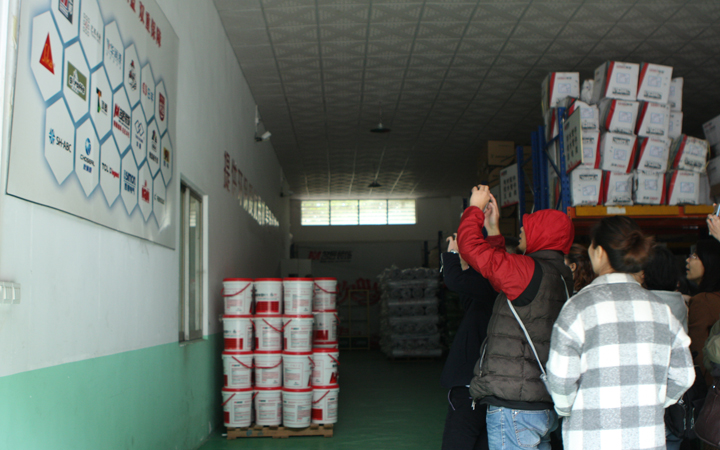 參觀完空間研究體驗(yàn)館后,大家繼續(xù)參觀裝潢公司名匠裝飾集團(tuán)的全國(guó)材料配送中心。配送中心內(nèi)整齊地?cái)[放著各種各樣工程材料,參觀團(tuán)的成員們都紛紛拿出手機(jī)拍照記錄學(xué)習(xí),或向名匠的工作人員詢問有關(guān)材料的使用性能、環(huán)保性能等問題。