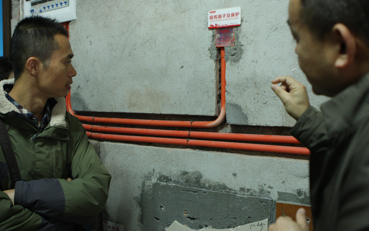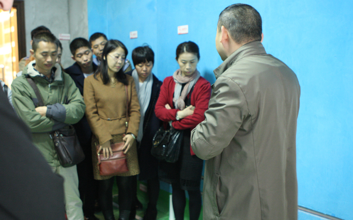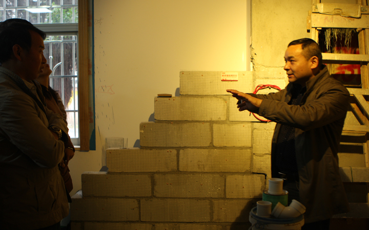 早上10點(diǎn),空間研究體驗(yàn)館熊經(jīng)理帶領(lǐng)參觀團(tuán)從衛(wèi)生間防水系統(tǒng)工藝開始了解名匠裝飾的特別工藝,再繼續(xù)講解電路鋪設(shè)技巧、墻面涂刷工藝、瓷磚粘合工藝、天花制作工藝等一系列的工程關(guān)鍵知識(shí)。熊經(jīng)理還帶大家參觀體驗(yàn)館內(nèi)的樣板房實(shí)景間,并為各團(tuán)員解說每一個(gè)問題。